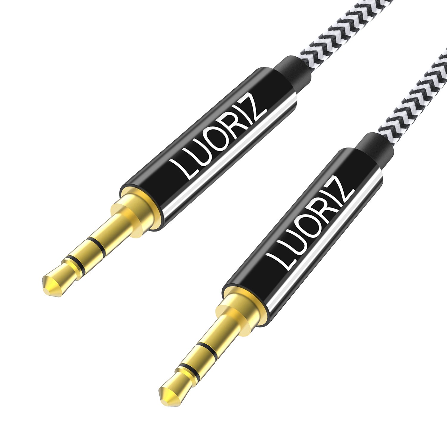 LUORIZ Aux Câble Jack Audio Cable Auxiliaire 3.5mm en Nylon Long Câble Audio Stéréo mâle vers mâle pour Casque,HiFi,Tablette,MP3,iPhone,iPod,ipad,Autoradios, Samsung Huawei - 2.4M Noir Blanc