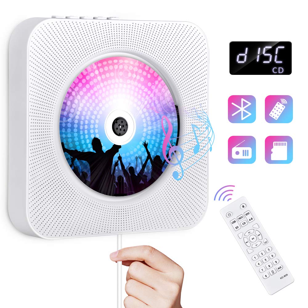 Lecteur de CD Portable Gueray Lecteur CD Montage Bluetooth Mural Haut-Parleur HiFi Intégré Radio FM avec Port Audio de 3,5 mm Clé USB et Audio AUX Entrée